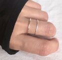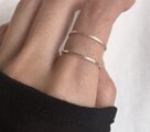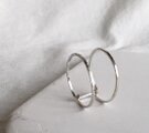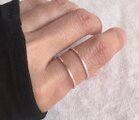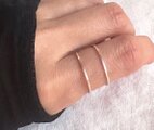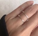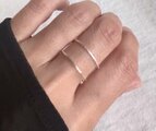 2つの華奢なリングがスペースを空けて指を彩るゴールドのリング。