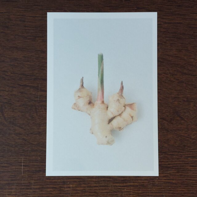自宅の畑でつくられたロブスターみたいな形をしたショウガの写真を印刷したもの。 ショウガはおいしかったです。 裏は無地です。紙厚0.25mm 画像と実物では色が異なって見える場合があります。