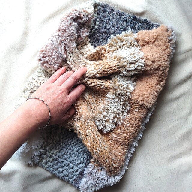 メリノウール、ファーヤーン(ポリエステル、ナイロン)、