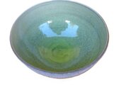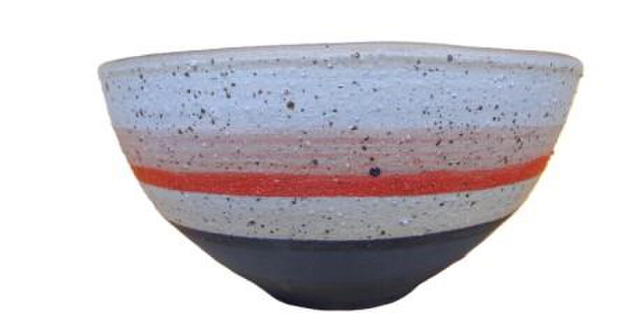 内面はクロム緑釉、外面は、微小コバルト、マイカ、硅石粒を練り込みの色粘土、