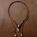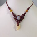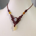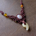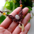 アラゴナイト 勾玉(ブラジル産)・アゲート(瑪瑙) マクラメ編みチョーカーネックレス 1点ものマクラメ編みアクセサリー 3807