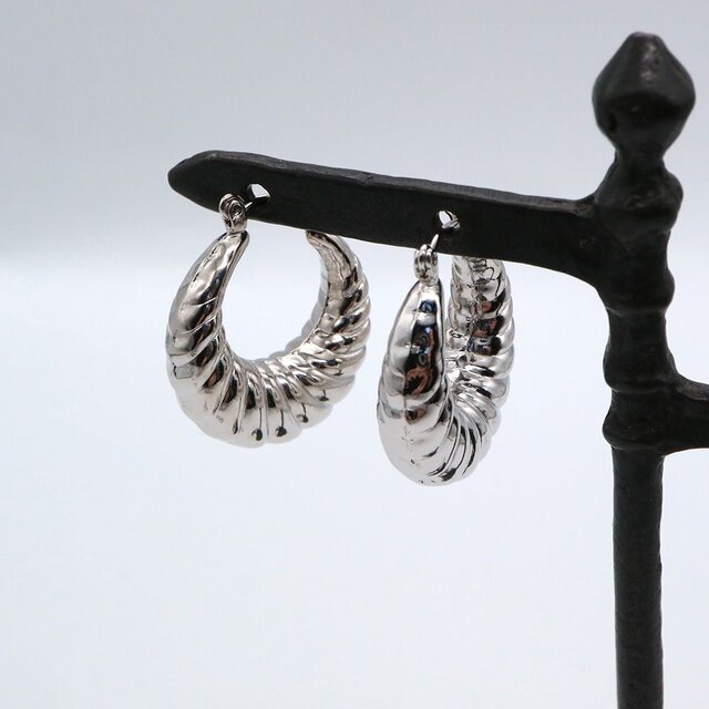 kpierce-058-silver ツイストフープピアス完成品 25×28mm(ロジウム・ニッケルフリー)【1ペア】