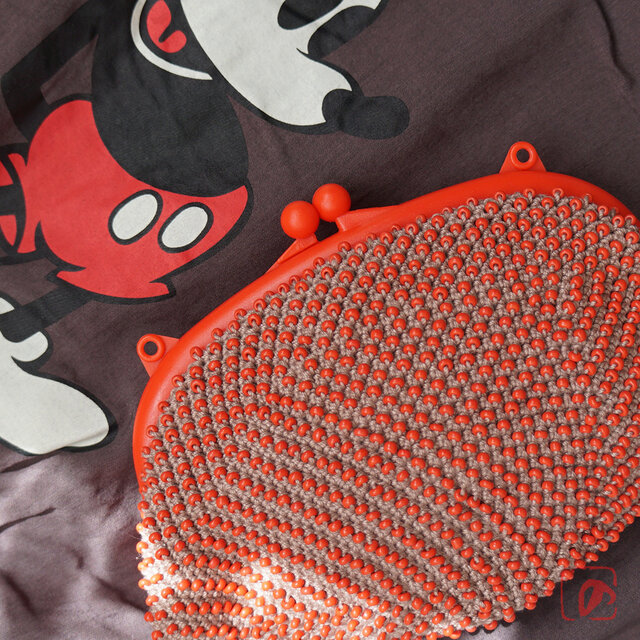 編みがま口×ビーズがま口のハイブリットつぶつぶビーズがま口です。