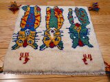 イラン・シラーズ地方の遊牧民(カシュガイ族)が、下絵を元にせず、羊やテント、動物や自然等をモチーフに、自分のインスピレーションで織り描く素朴な手織り絨毯です。基本的に、世界に1枚しかない一枚です。