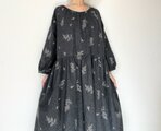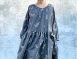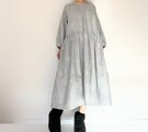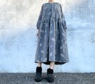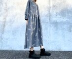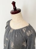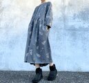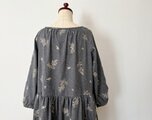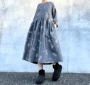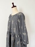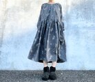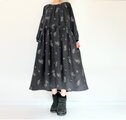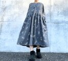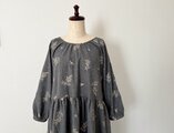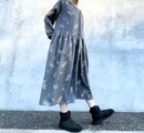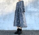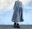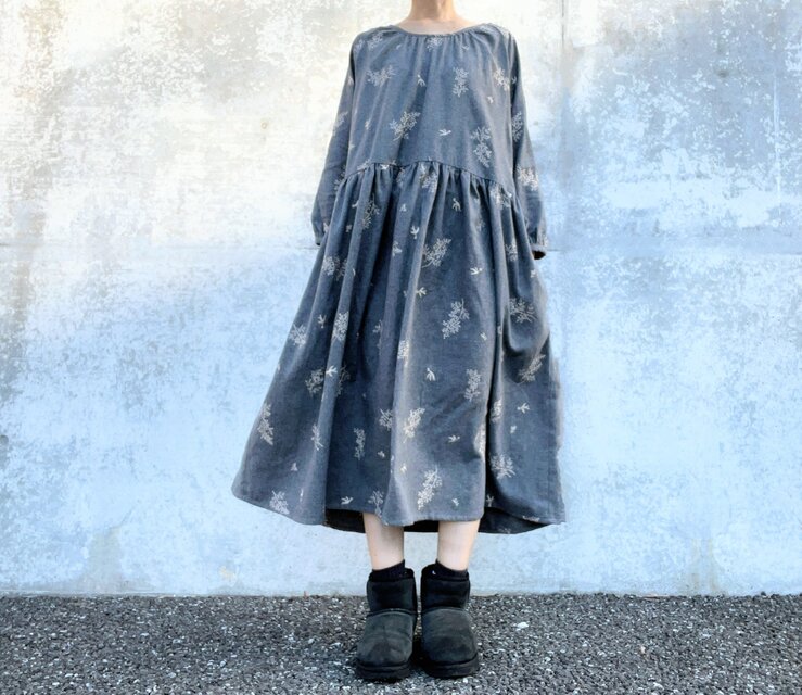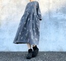 50%OFF★刺繍の小鳥とミモザ花柄*大人の長袖ワンピース*国産綿100%あったか起毛*ポケット付*クラシックグレー