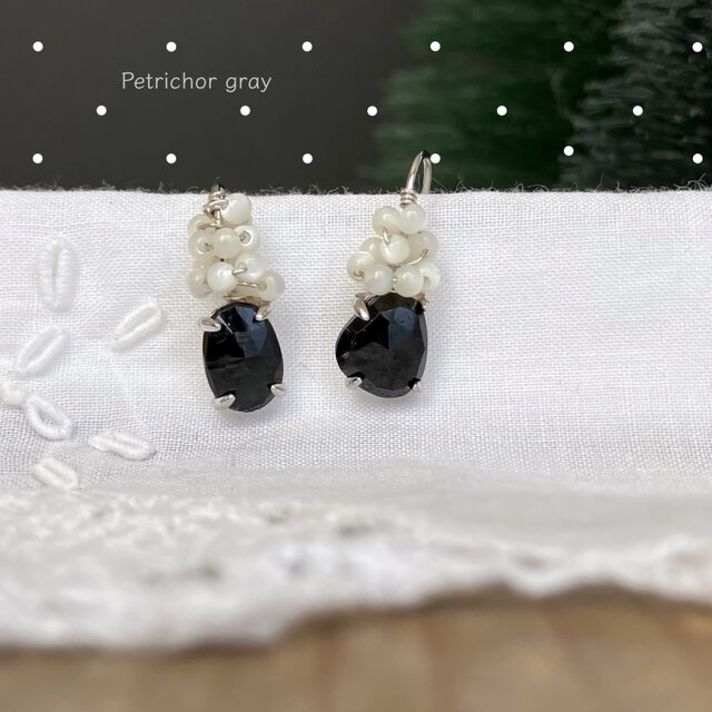 耳元にひっそりと輝くモノトーンの シンプルなピアスです。