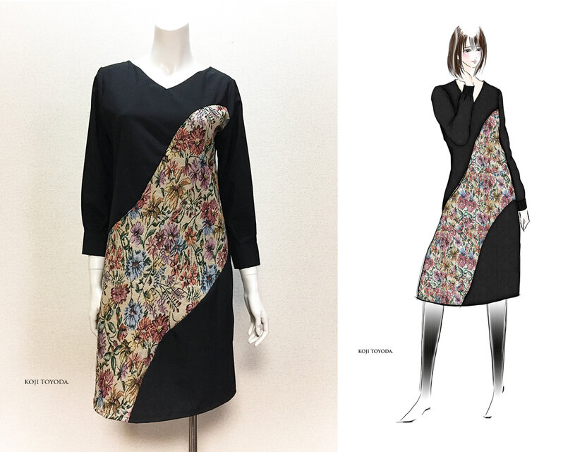 をメインに使用し、ゴブラン織りを湾曲に切り替えたワンピースになります。