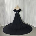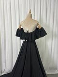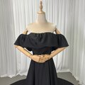 高品質!パーティードレス ブラック オフショルダー イタリアサテン ロングトレーン 披露宴