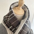 暖かいボア生地とウールのチェック生地を使って、ミニマフラーを作りました。