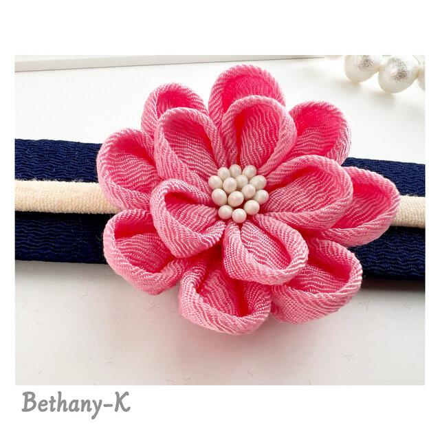 初節句・お食い初めに人気! ◆4.5cmカメリア(下がり無し)◆ローズピンク色のママでも簡単につけられるつまみ細工