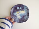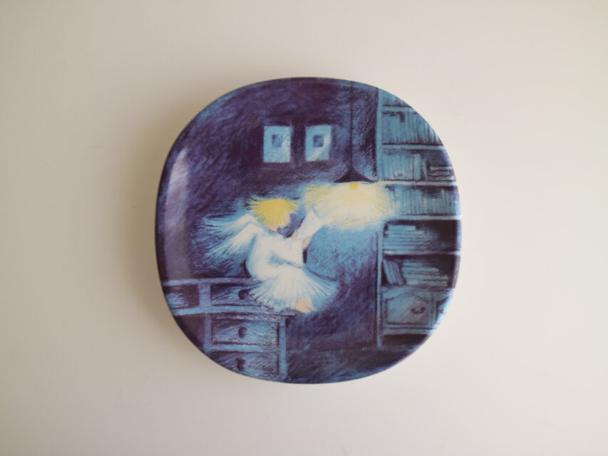プレートにはランプの下で机に座って本を読んでいる天使が描かれています。みんなが寝静まった夜中にこっそりと読書を楽しんでいるのでしょうか。