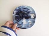 プレートには、夜の森を女の子と男の子が手を繋いで歩いており、その後ろには天使が。夜の森を探検する2人を見守っているのでしょうか。