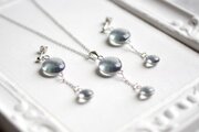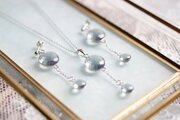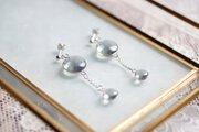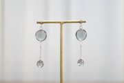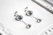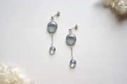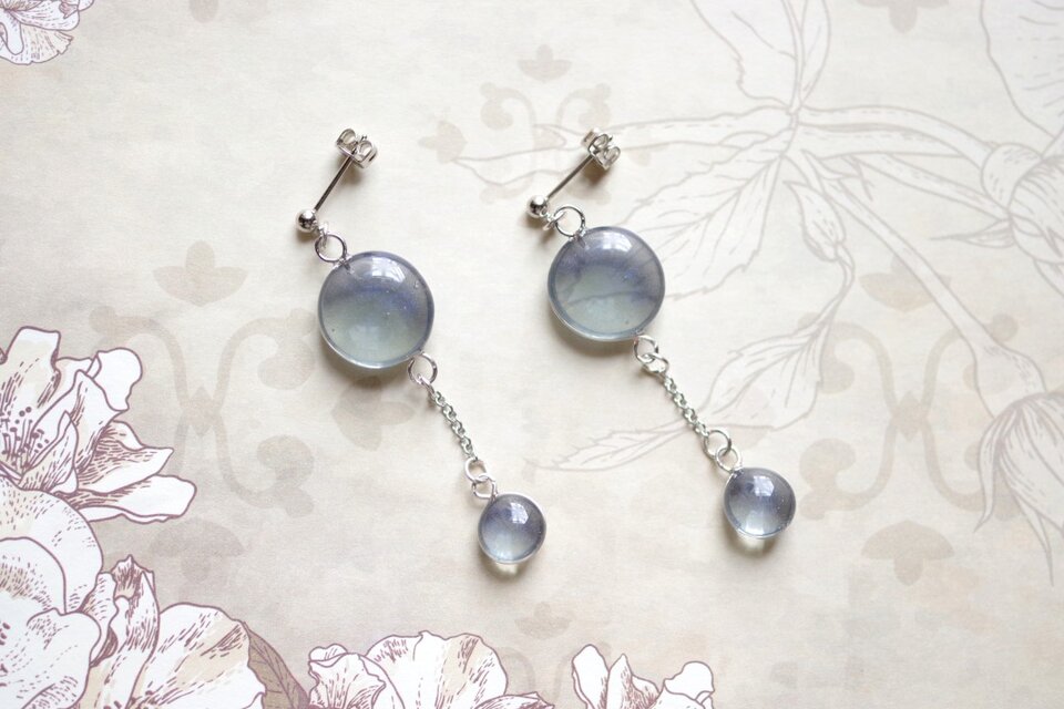ぷっくり張りつめた大小の水滴のようなレジンの透明感に魅入ってしまうピアス。