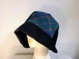 魅せる帽子☆ふんわり暖か♪ウールラメニッのバイカラークロッシュ~ブラック&格子柄
