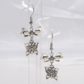 アンティークシルバーカラーの蝶とリボンを組み合わせたピアスです