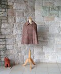 ブラウン系の千鳥格子柄にアンティークゴールドのボタンを合わせています。