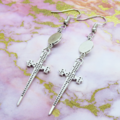 アンティークシルバー ゴシック調ソード(剣)とラインストーンのスリムなピアス サージカル可