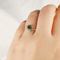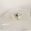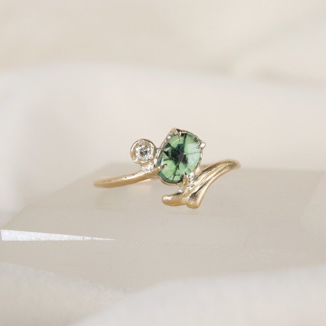 放射状の模様が入った、珍しいエメラルドであるトラピッチェエメラルドをダイヤモンドと一緒にK10リングに仕立てました。