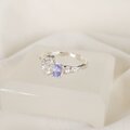 やわらかなパープルが独特の魅力を放つ、非加熱サファイアを淡水真珠と一緒にシルバー925のリングに仕立てました。
