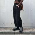 新作❤︎裏起毛Ver.大人かわいいコーデュロイ半ゴム仕立てタックワイドパンツ(ブラック)25044BK