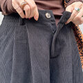 大人かわいいコーデュロイ半ゴム仕立てタックワイドパンツ