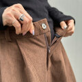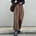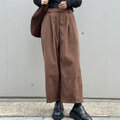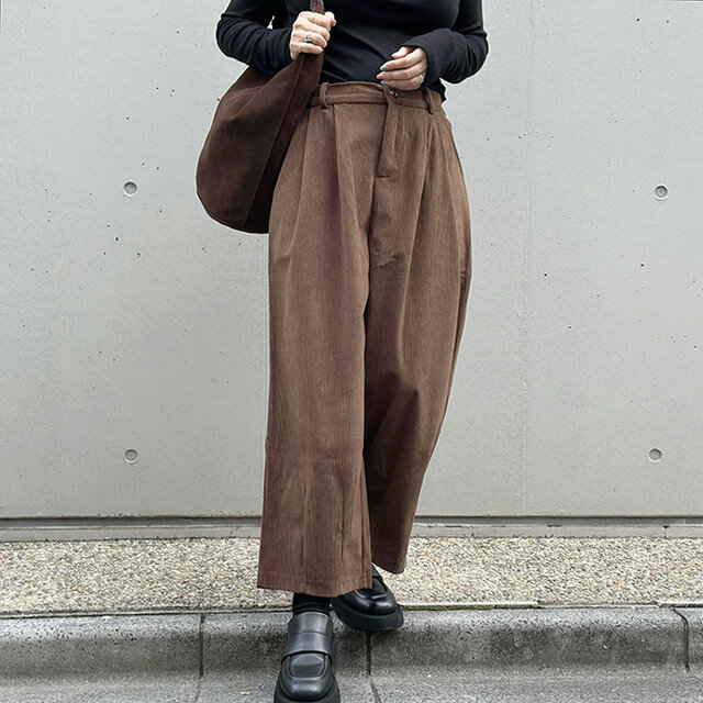 新作❤︎裏起毛Ver.大人かわいいコーデュロイ半ゴム仕立てタックワイドパンツ(ココアブラウン)25044BR