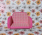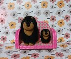 羊毛フェルト製のダックスフント親子のぬいぐるみセット、ソファ付きで可愛らしいデザイン。