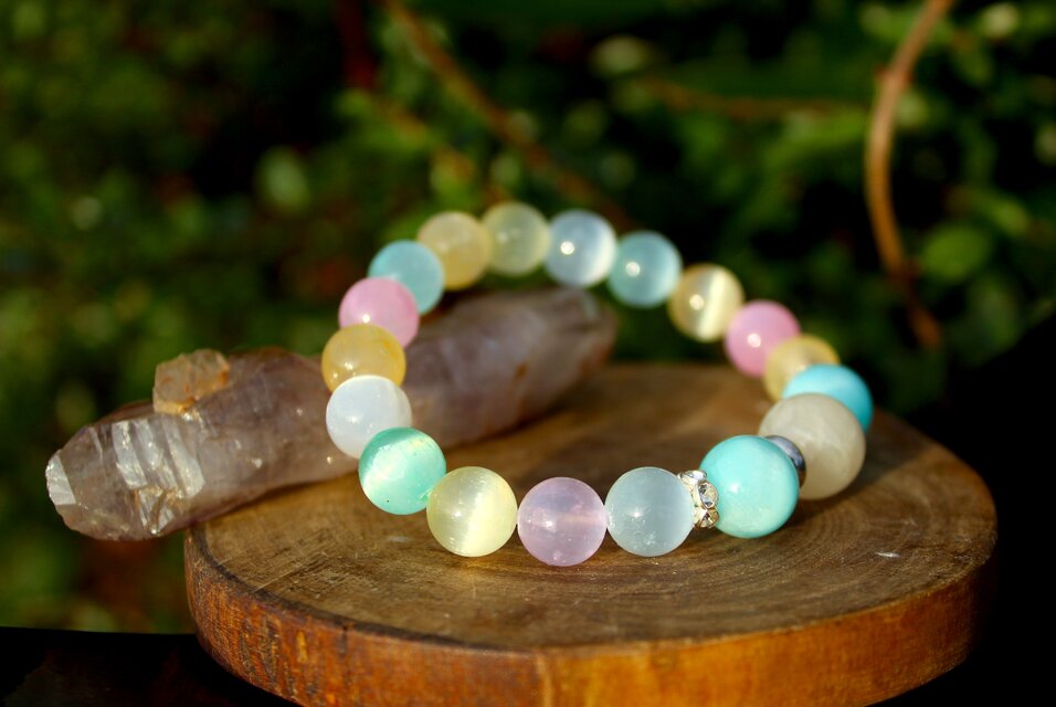 虹色の光が、全てのネガティブなエネルギーをクリアにして、魂を浄化し、調和とバランスをもたらし、魂の安息にふさわしいエネルギーを持つブレスレットです。