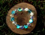 中心に14ミリのエンジェルオーラクォーツ、12ミリのミスティックオーラクォーツチタニウムアクアブルーレインボークォーツと、12ミリのエンジェルオーラクォーツを交互に組み合わせました。最後に10ミリのムーンストーンの間に12ミリのミスティックオーラクォーツチタニウムアクアブルーレインボークォーツで仕上げました。