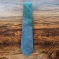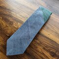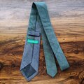 黒糸をベースに、灰色と緑を織り込みました。フラットに見える表面ですが、艶無しの紬糸で奥行きをだしました。織り組織を切り替えることで、光の加減で色が変化し、高級感のある一本です。