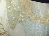 銀糸地に流水と梅の木文様です。落ち着いた色合いで高級感のある帯地です。