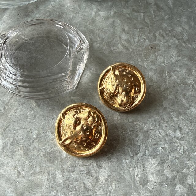 パンサーが印象的なゴールドトーンメダリオンクリップイヤリング。