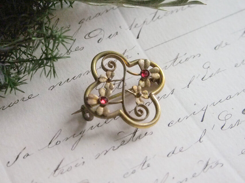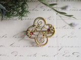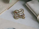 きらりと赤いガラスが光るヴィンテージブローチ