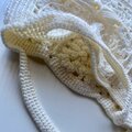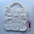オフホワイトの毛糸で丁寧に編み上げた、ニットバッグです。