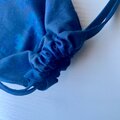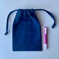 深みのあるネイビーが印象的な、布製のきんちゃく袋です。