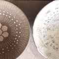 表面が程よく乾燥した段階で、表面の白化粧土を