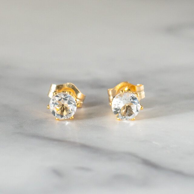 無色透明の輝きがどんな服装にも合わせやすい、ホワイトトパーズののシンプルピアスをご用意しました。