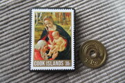 クック諸島 「ラファエロ」クリスマス切手ブローチ10692