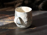 白壁が風化したみたいな丸みのある大きめのマグ。