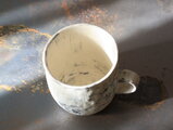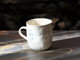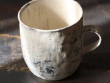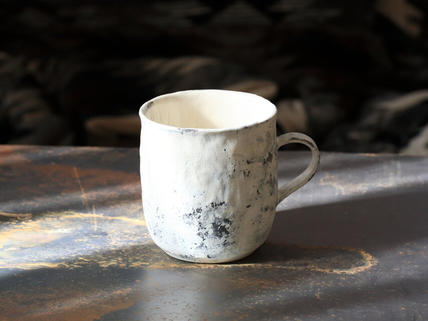 白壁が風化したみたいな丸みのある大きめのマグ。