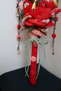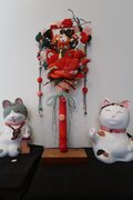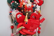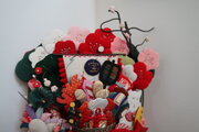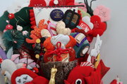 梅、松、招き猫、鶴、達磨、鯛、宝船など、熊手に飾り付けました。