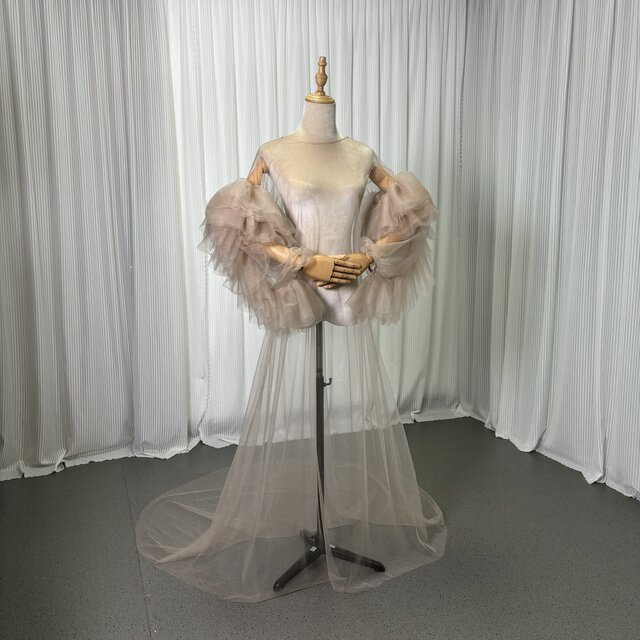 オーバードレス ブラウン 長袖 ラッフルフリル オートクチュール エレガント 前撮り