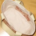 中はベージュのドットで、ポケットのみ外の鳥と植物柄です。