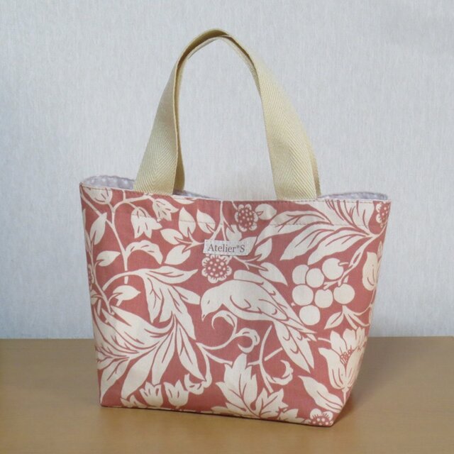 【再販】ミニスクエアトートバッグ★植物柄(テラコッタ)丁寧な作りは、変わらず いい感じなトートでした。