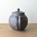 赤土で成形し、落ち着いた表情のマンガン釉を