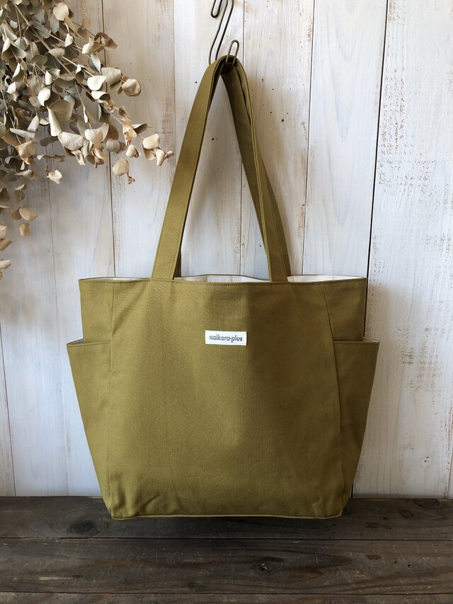 サイドポケット トートバッグ カーキ40 A4 【送料無料】のコピー