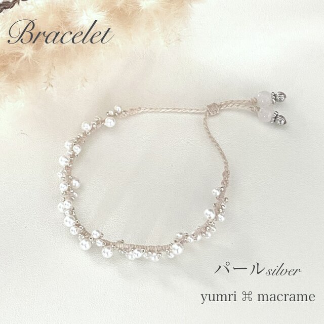 [受注制作]yumri ⌘ macrame マクラメパールブレスレット(シルバー)