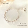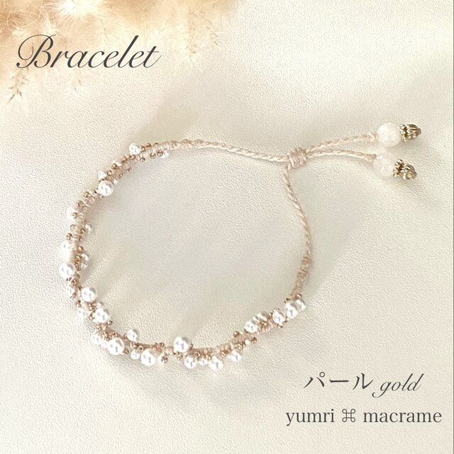 3サイズの小粒パールとビーズを可憐に編み込んだマクラメブレスレットです。端にはアクセントに優しい色合いのホワイトジェード(天然石)を付けました✩.*˚