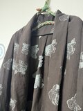 こんにちは。先程届きました。画像で見るよりもきれいな色です。ドルマンスリーブになってるのがとても良いですね!色違いでも欲しいくらいです。ちなみに手持ちの生地で同じガウンコートを作って頂くことは可能でしょうか?