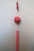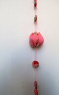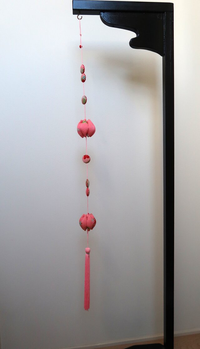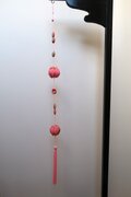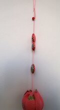 ピンクの宝袋2個とプラスチック包みボタンを布で包んだ6個で、